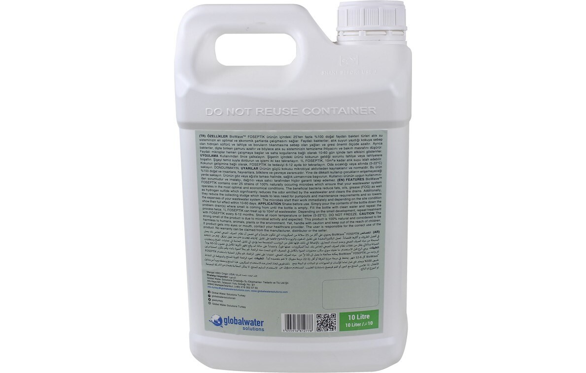 BioWave FOSEPTİK TANKLAR serisi atık su sisteminizin en optimal ve ekonomik şartlarda çalışmasını temin eder. İçindeki faydalı bakteriler foseptik tankının veya lağım çukurun yaydığı kokuyu keser ve aynı zamanda hem organik (doğal) hem inorganik (kimyasal) atıkları bertaraf eder. Ürün sayesinde kokudan kurtulmuş ve foseptik sisteminizin bakım ve masraf ihtiyacını azaltmış olacaksınız. Faydalı mikroorganizmaların %100 doğal olup ve genetik olarak modifiye edilmemiş olması ürünü doğa dostu ve kullanıcısını gerçek bir çevre dostu yapar.
