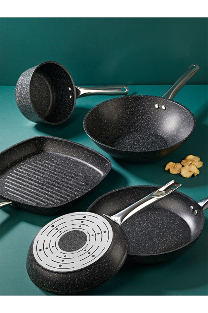 Granit iç ve dış yüzeyi sayesinde yüksek ısı dağılımı sağlar, eşit pişirme ve mükemmel lezzet sonuçları elde etmenize yardımcı olur; Yapışmaz taban özelliği ile yemeklerinizi kolayca çevirerek pişirebilir, temizliği pratik ve zahmetsiz hale getirir; Şık siyah rengiyle mutfağınıza modern bir dokunuş ekler ve estetik bir görünüm sunar; Tek parça halinde gelen bu wok tava, minimalist mutfaklar için idealdir ve kolay saklama imkanı sağlar; Dayanıklı granit malzemesi uzun ömürlü kullanım vaat ederken, 28 cm çapındaki geniş yüzeyi geniş pişirme alanları sunar;