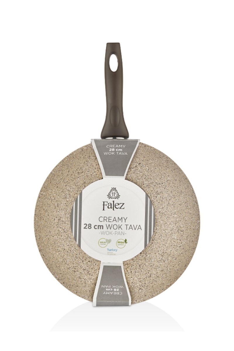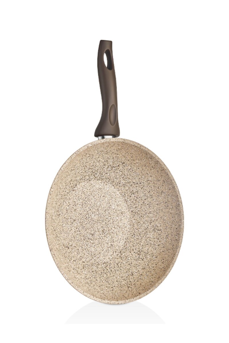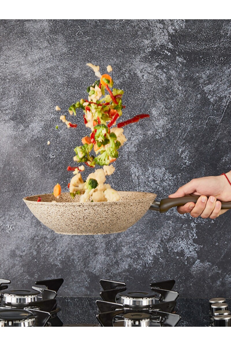 Krem rengiyle mutfağınıza şıklık katan granit wok tava, modern ve estetik bir görünüm sunar; Granit iç materyali sayesinde yüksek ısı dağılımı sağlar ve eşit pişirme deneyimi yaşatır; Tek parça halinde gelen bu ürün, minimalist ve pratik kullanım için idealdir; Wok tava tipi tasarımı ile Asya mutfağından ilham alınarak tasarlanmıştır ve çeşitli yemeklerinizi mükemmel şekilde pişirmenize olanak tanır; Yapışmaz taban özelliği sayesinde pişirme sırasında yiyeceklerin tavaya yapışmasını önler ve temizliği kolaylaştırır; Dış yüzeyde kullanılan granit malzeme, dayanıklılığı artırarak uzun süreli kullanım imkanı sunar;