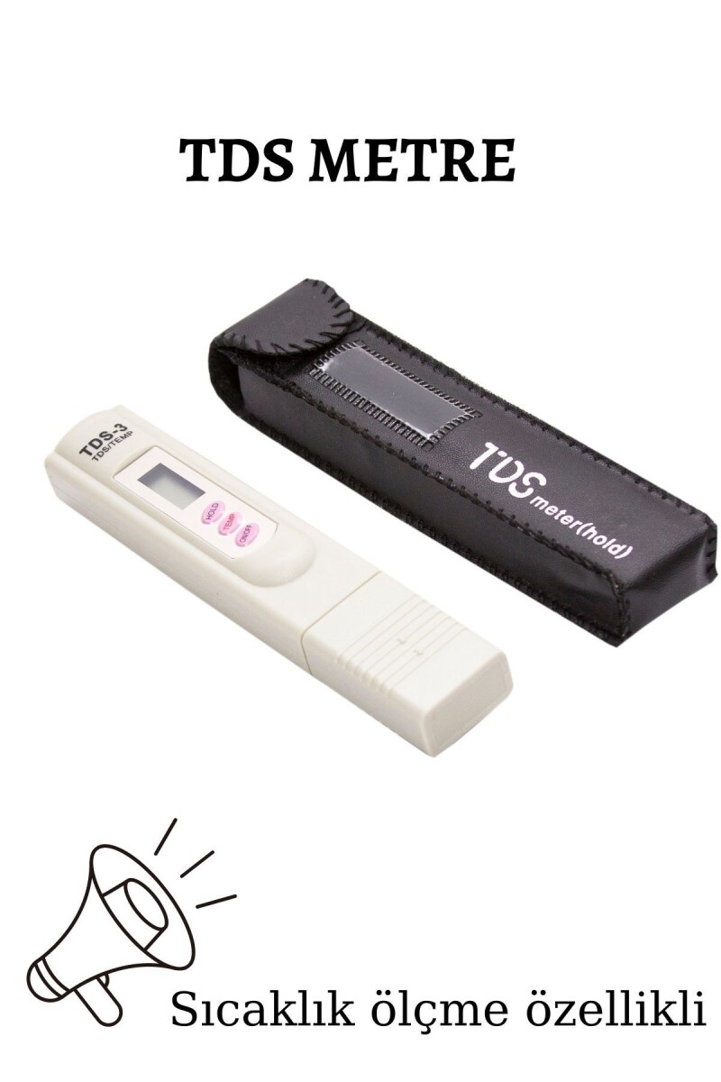 Ithal tds metre Su arıtma cihazınızın su değerini anlık olarak kontrol etmenizi sağlar. ; Suyunuzun içindeki hem askıdaki katı maddeyi (tds) ölçer hem de sıcaklığını derece cinsinden ölçer. ; Ürün deri kılıfında gönderilir.;