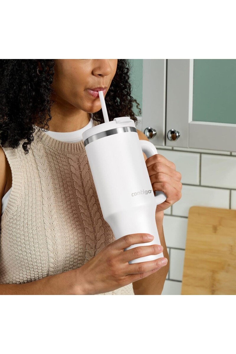 Kulplu Termos Bardak - Tumbler - Paslanmaz Çelik - Pipetli & Kapaklı – 29 Saat Soğuk