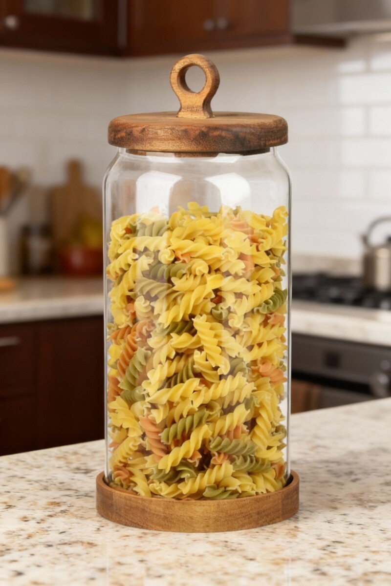 Maksimum depolama alanı sunan Nora 2350 ml Akasya Kapaklı Saklama Kabı, doğal ahşap kapağı ve geniş cam gövdesiyle büyük miktardaki gıdaları uzun süre taze tutar. Modern mutfaklar için ideal bir seçimdir.