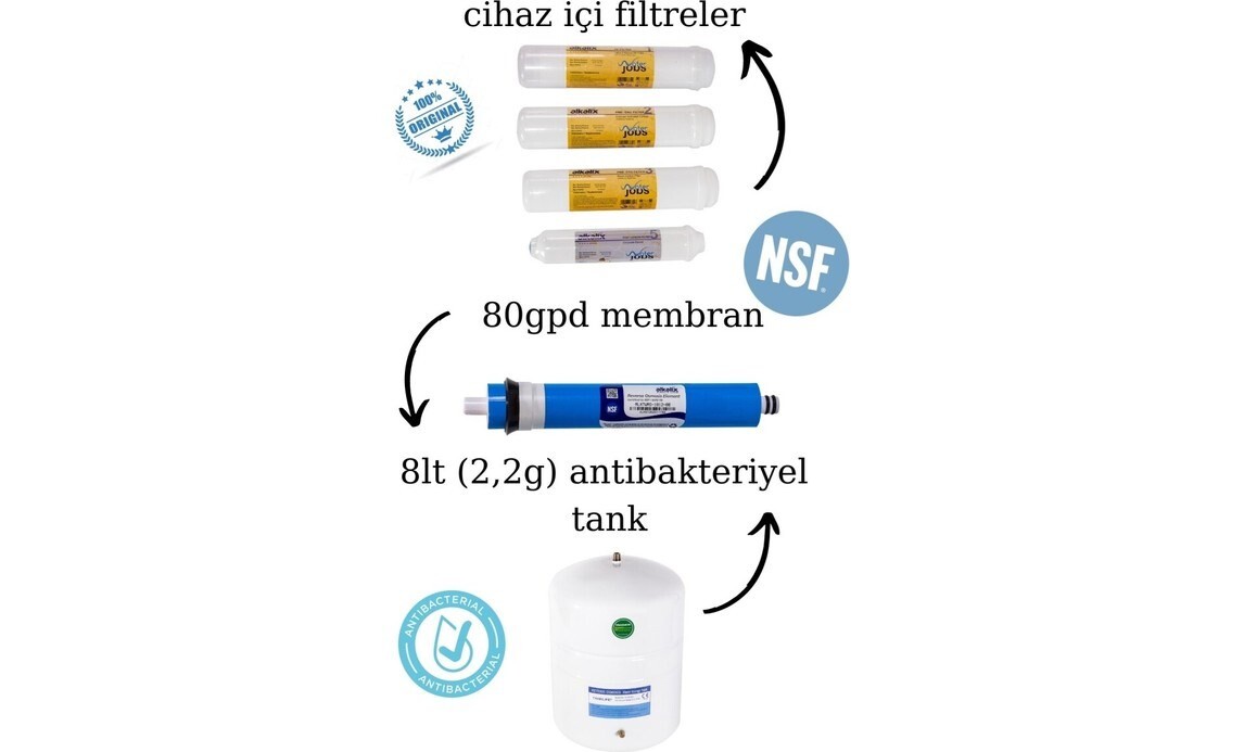 Tank ve filtrelerimiz NSF sertifikasına sahiptir.